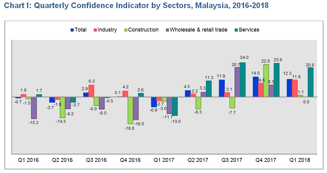 The business performance in the first quarter of 2018 is expected to increase with confidence indicator +12.3 per cent contributed by industry (+11.9%), construction (+1.1%) and services (+20.6%).
