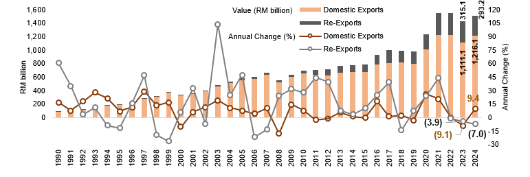 Chart 1: Performance of Domestic Exports and Re-Exports, 1990 - 2024