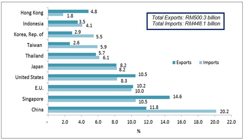 The following charts show Malaysia's major trading partners for January - August 2016.